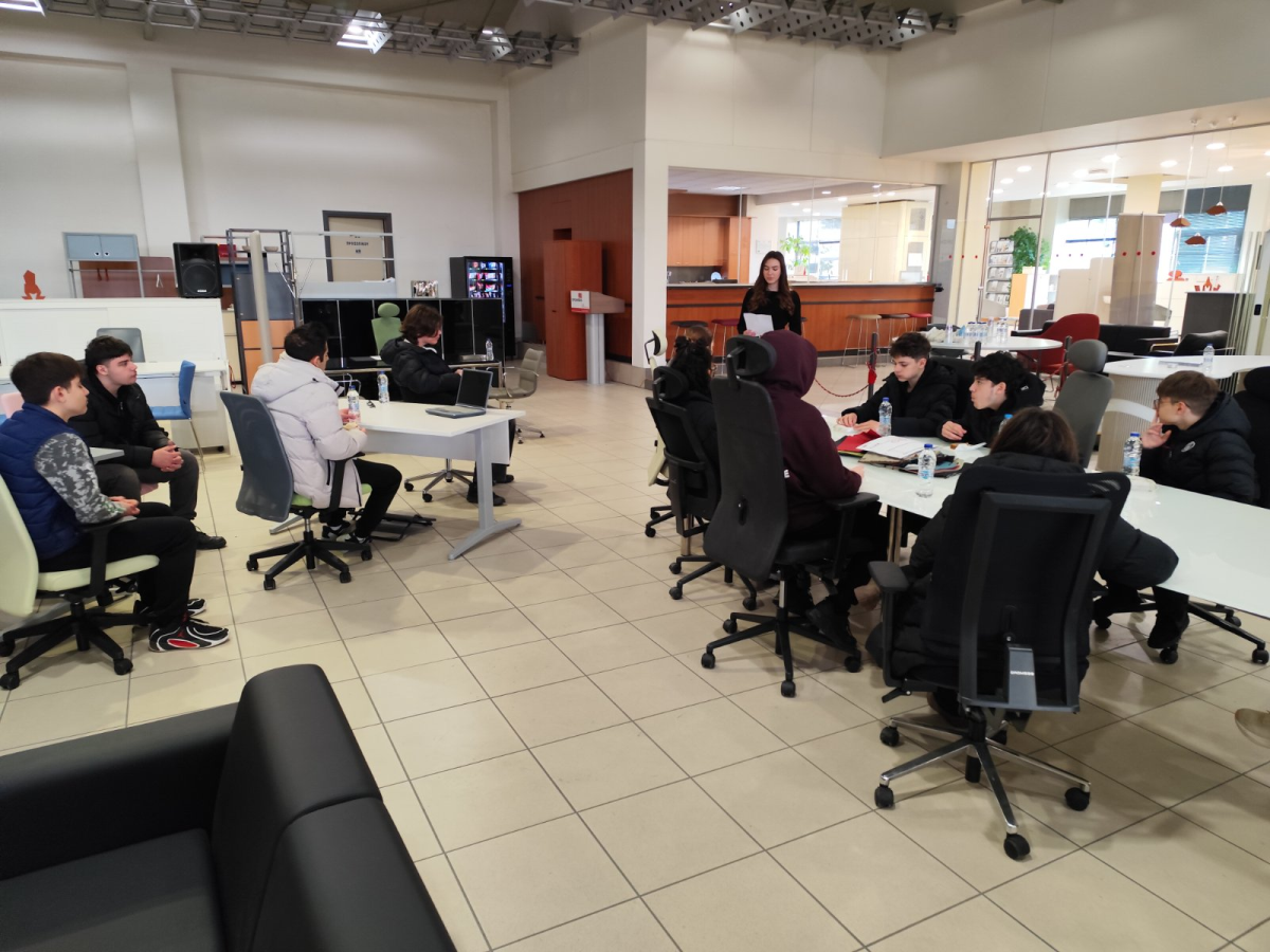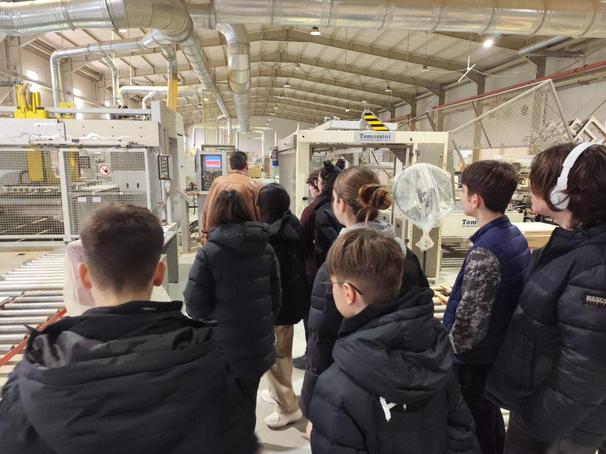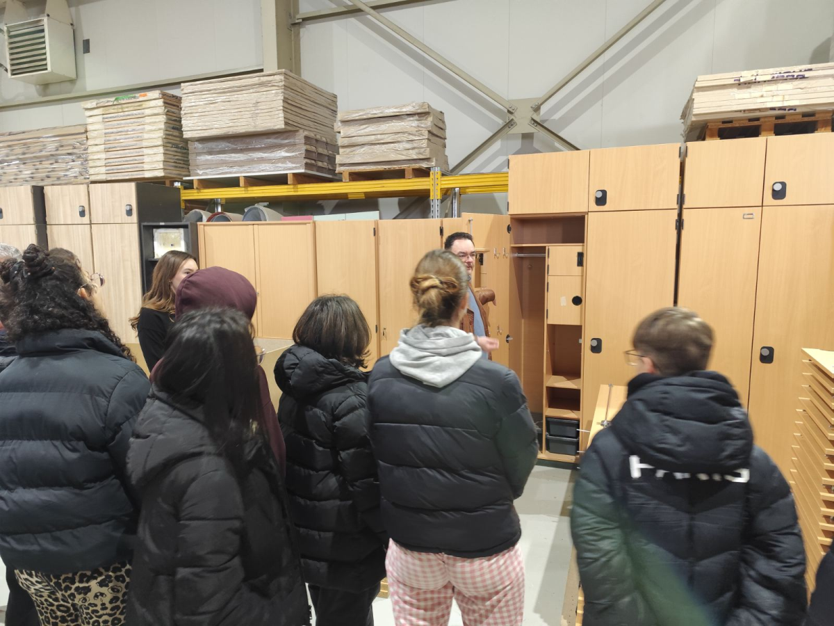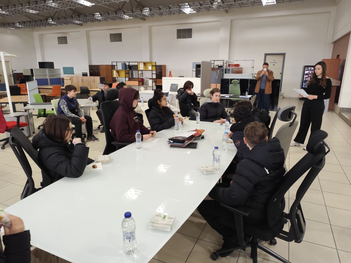 Οι μαθητές είχαν την ευκαιρία να παρακολουθήσουν από κοντά όλα τα στάδια της παραγωγικής διαδικασίας: από την επεξεργασία των πρώτων υλών έως τη μετατροπή απλών φύλλων ξύλου σε έτοιμα έπιπλα γραφείου, όπως γραφεία, ντουλάπες και άλλα προϊόντα. Ακολούθησε επίσκεψη στον εκθεσιακό χώρο της εταιρείας, όπου η Μυρτώ Πετρισλή παρουσίασε μια σύντομη αλλά ουσιαστική αναδρομή στην ιστορία και την εξέλιξη της επιχείρησης. Κατά τη διάρκεια της παρουσίασης τέθηκαν ερωτήματα και διατυπώθηκαν συμπεράσματα σχετικά με όσα παρατηρήσαμε.