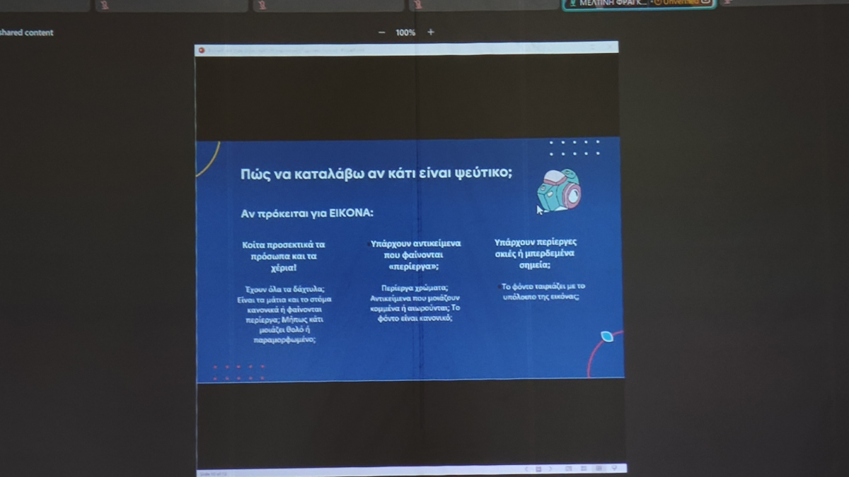 Μεταξύ άλλων, συζητήθηκαν οι κίνδυνοι που μπορεί να προκύψουν από τη χρήση των νέων τεχνολογιών, οι παγίδες των μέσων κοινωνικής δικτύωσης, το φαινόμενο του διαδικτυακού εκφοβισμού, καθώς και θέματα που σχετίζονται με τα διαδικτυακά παιχνίδια και τον πιθανό εθισμό σε αυτά. Ιδιαίτερη αναφορά έγινε επίσης στην ανάγκη προστασίας από την παραπληροφόρηση στο διαδίκτυο, όπως τα ψευδή και παραποιημένα ψηφιακά περιεχόμενα (fake news και deep fake news), αλλά και στον σεβασμό των πνευματικών δικαιωμάτων.