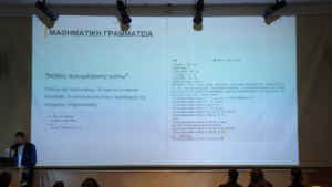 Στη συνέχεια, ο λόγος δόθηκε στην κ. Πατραμάνη Πασχαλία, κάτοχο BSc Villanova University στην Πενσυλβάνια, η οποία αναφέρθηκε στις ελληνικές λέξεις που κρύβονται στην αγγλική γλώσσα.