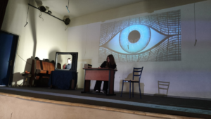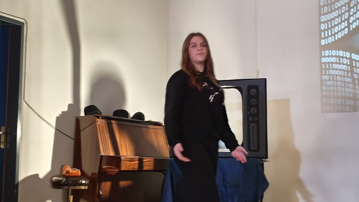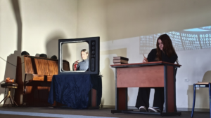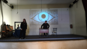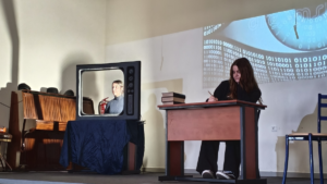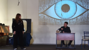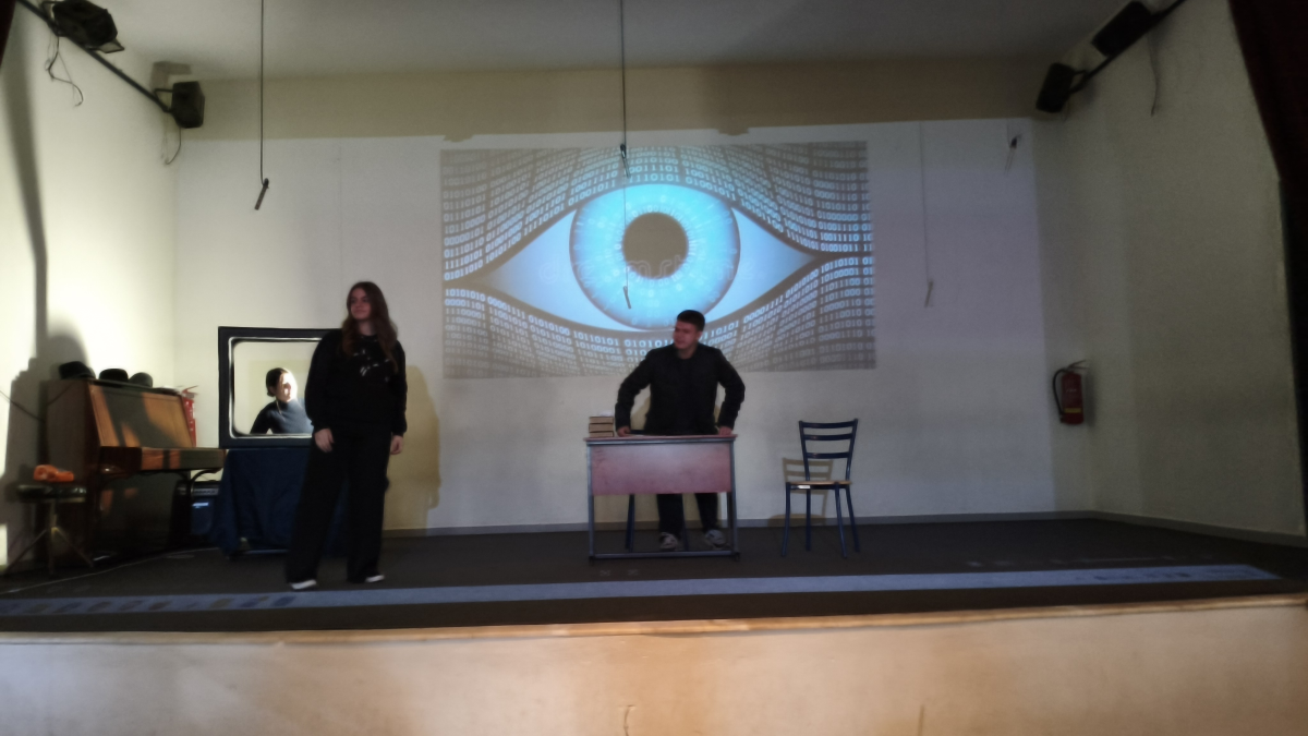 Την εκδήλωση έκλεισαν οι μαθητές του σχολείου, Κανέλη Άννα Μαρία, Γερμανού Κωνσταντίνα,  Ιωαννίδου Χρυσάνθη, Γκειβελίδης Γιάννης και  Πασχαλίδου Καλλισθένη, με τη δραματοποίηση  αποσπάσματος από το έργο του Τζωρτζ Όργουελ 1984. Στο θεατρικό αναδείχθηκε η συναισθηματική απογύμνωση και η ηθική αλλοίωση του ανθρώπου εξαιτίας της συρρίκνωσης της γλώσσας.